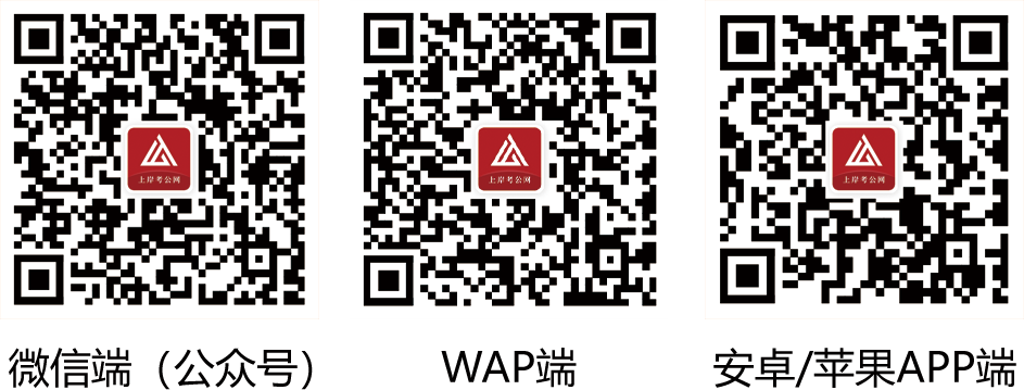 2. 移动端:通过手机扫描下方二维码,关注微信公众号使用“上岸考公网”微信端,或下载app使用。请注意:使用移动端时,须先通过校园网ip注册账户(该账户将自动升级为不限ip的移动端账户),并以该账户登录移动端。