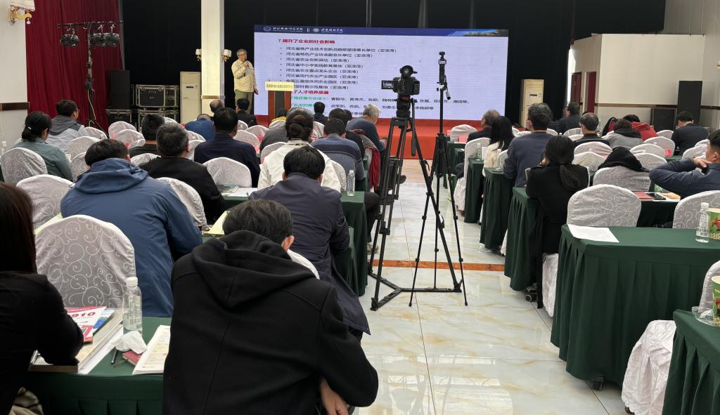 2025年10月28日,“京津冀科技小院建设发展研讨会”在我校迁安亚滦湾 “科技小院”召开。河北省现代农业产业技术体系桃创新团队首席专家、河北科技师范学院张立彬教授受邀做主题报告,研究生陈丽芳介绍了她在“科技小院”开展研究工作的体会。本次活动由河北省农村专业技术协会主办,北京市农村专业技术协会和天津市农村专业技术协会协办,河北亚滦湾农业发展有限公司承办。我校桃“科技小院”武军凯教授、肖啸教授、张晨光博士、李晓颖博士等参加会议。
