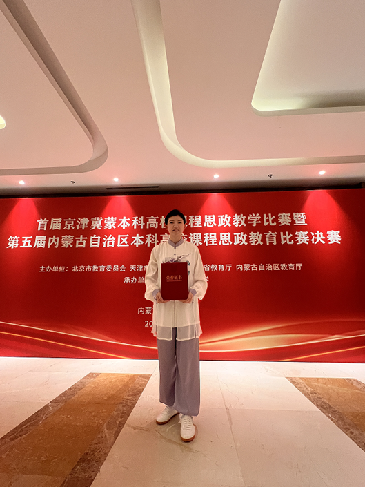 12月20日至21日,首届京津冀蒙本科高校课程思政教学比赛于内蒙古自治区内蒙古工业大学举行。我校体育与健康学院教师刘强主讲的《二十四式简化太极拳》课程,凭借精湛的教学技艺以及深刻的思政内涵,荣获公共基础课程组一等奖,为学校争得荣誉。