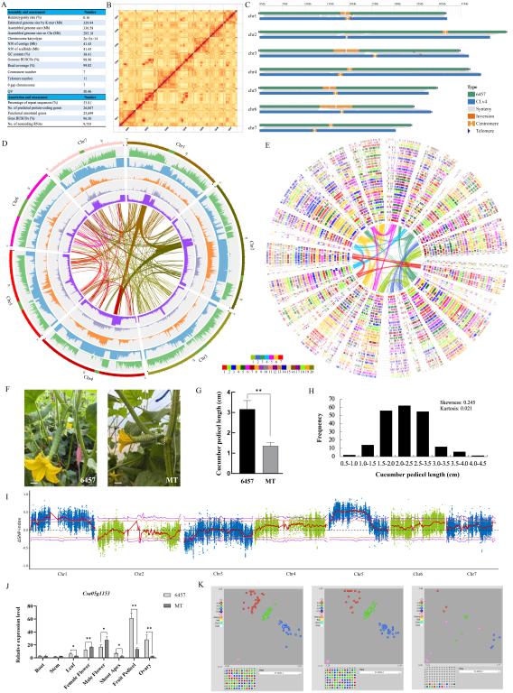 黄瓜(6457)t2t基因组组装、注释、进化、共线性分析及果柄长度基因鉴定
