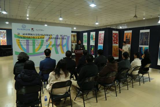冬日蕴华,艺聚校园。2025 年12月29日,第二届亚洲城市文化国际海报展暨“一带一路”中国与东盟国融合数字艺术展河北科技师范学院站开幕式在我校艺术学院举行。校党委常委、副校长马爱林,燕山大学艺术与设计学院院长赵琳,以及校宣传部、艺术学院有关负责同志,社会各界艺术家朋友齐聚一堂,共同见证这场跨越国界的艺术盛宴启幕。