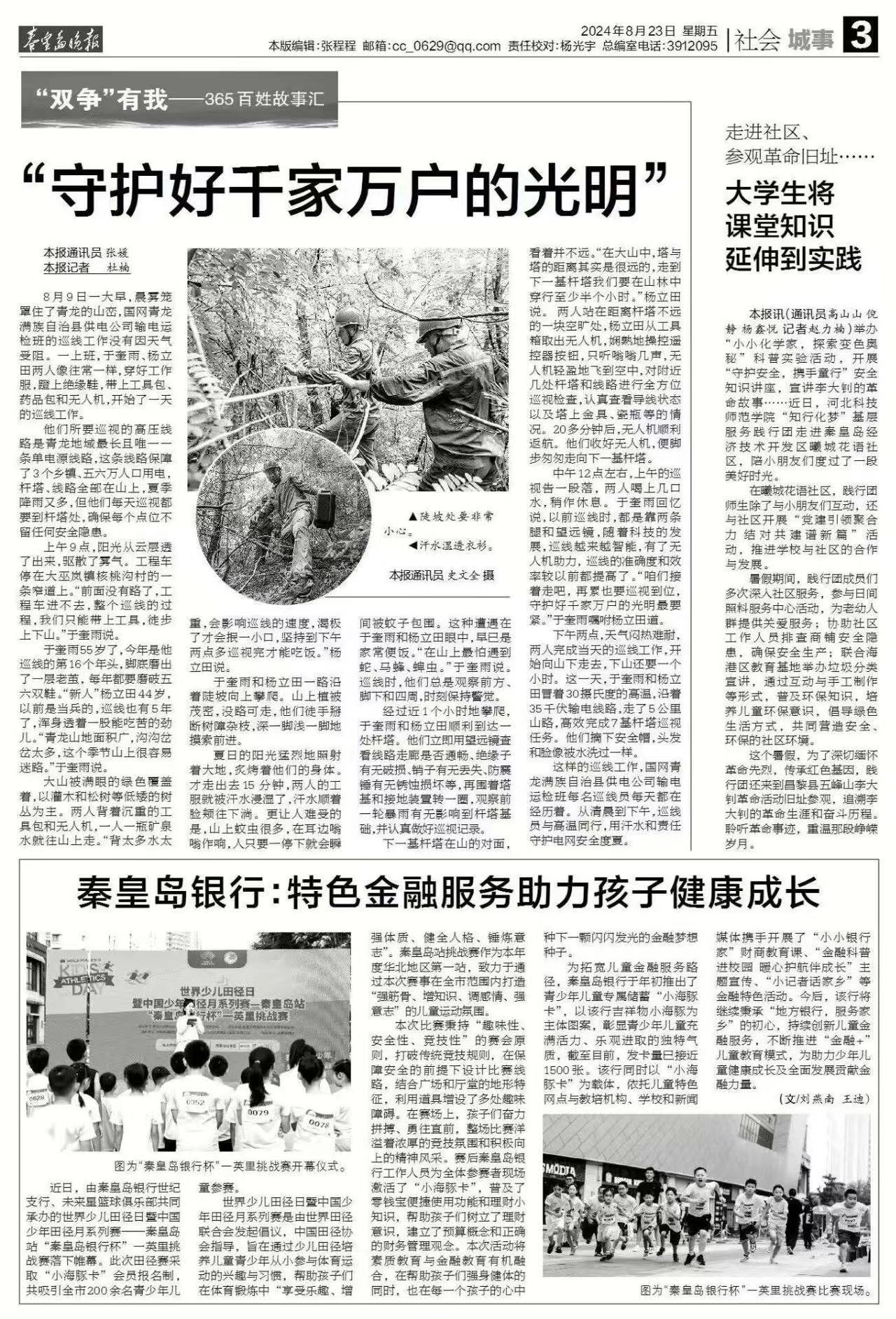 2024年8月23日,《秦皇岛晚报》报道我校“知行化梦”基层服务实践团走进秦皇岛经济技术开发区曦城花语社区,开展“党建引领聚合力 结对共建谱新篇”活动。
