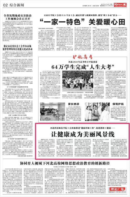 2025年6月10日,《河北工人报》以“河北科技师范学院工会积极推进‘健康科师工程’,促进教职工健康——让健康成为美丽风景线”为题,报道我校工会通过形式多样的日常体育活动引导教职工养成运动习惯,打造独具特色的教职工健康促进体系。