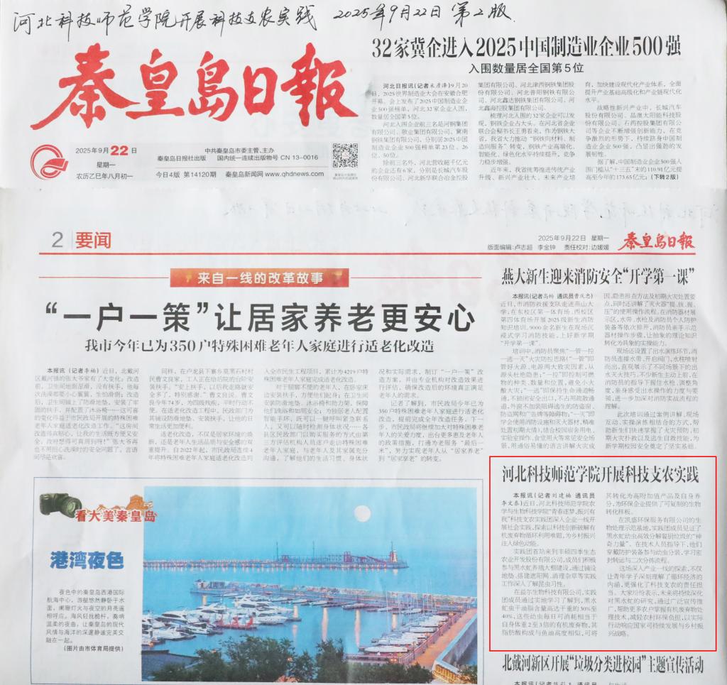 09.222025《秦皇岛日报》:河北科技师范学院开展科技支农实践【农学与生物科技学院】