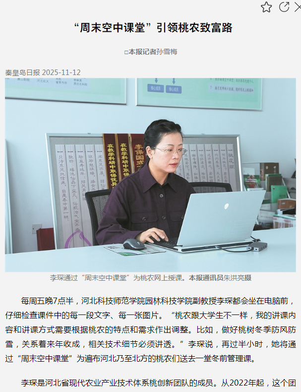 11.122025《秦皇岛日报》:“周末空中课堂”引领桃农致富路【党委宣传部】