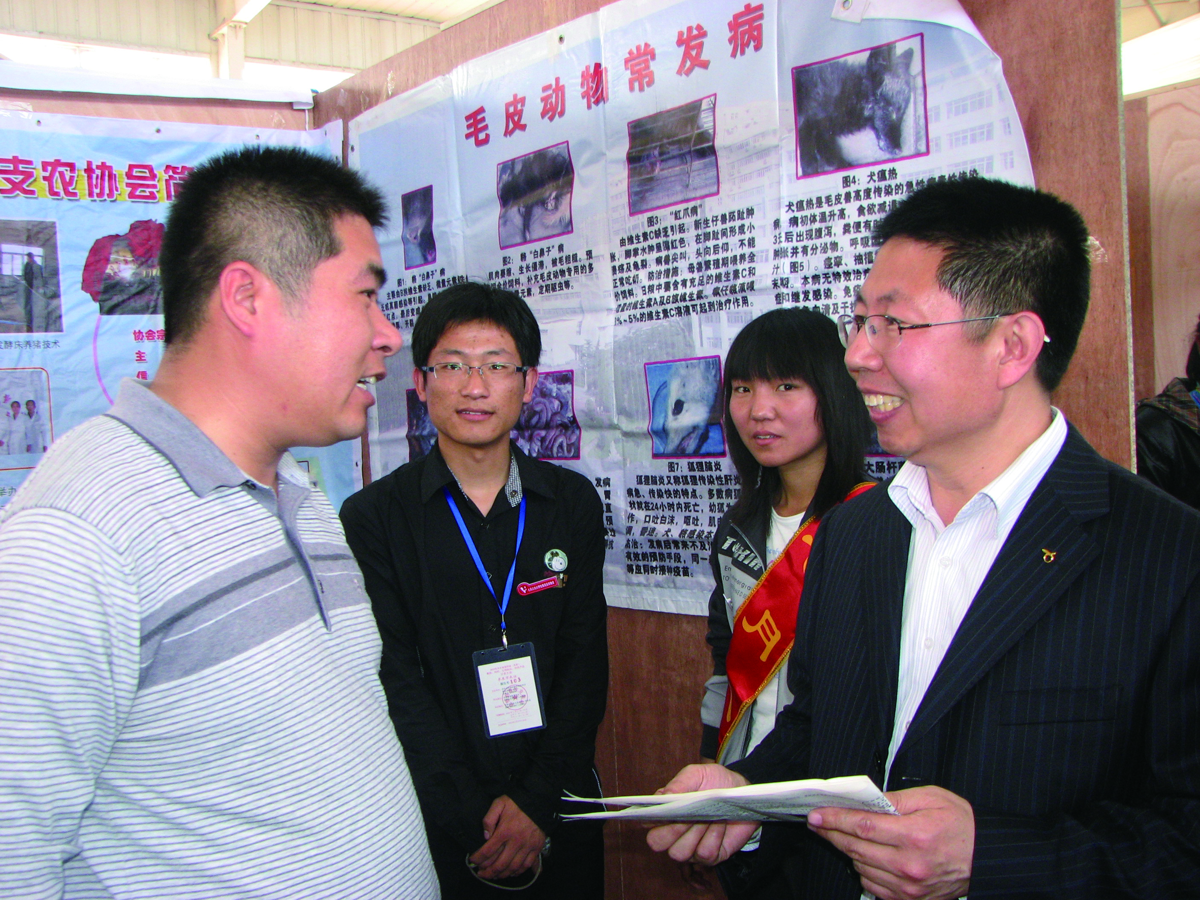 马增军教授带领“七月之光”大学生党员支农协会志愿者向养殖户传授毛皮动物养殖技术