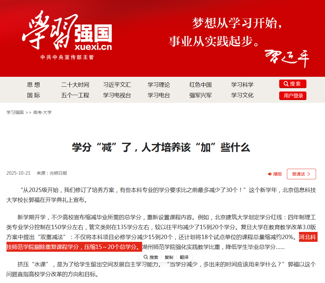 11.182025学习强国:学分“减”了,人才培养该“加”些什么【党委宣传部】