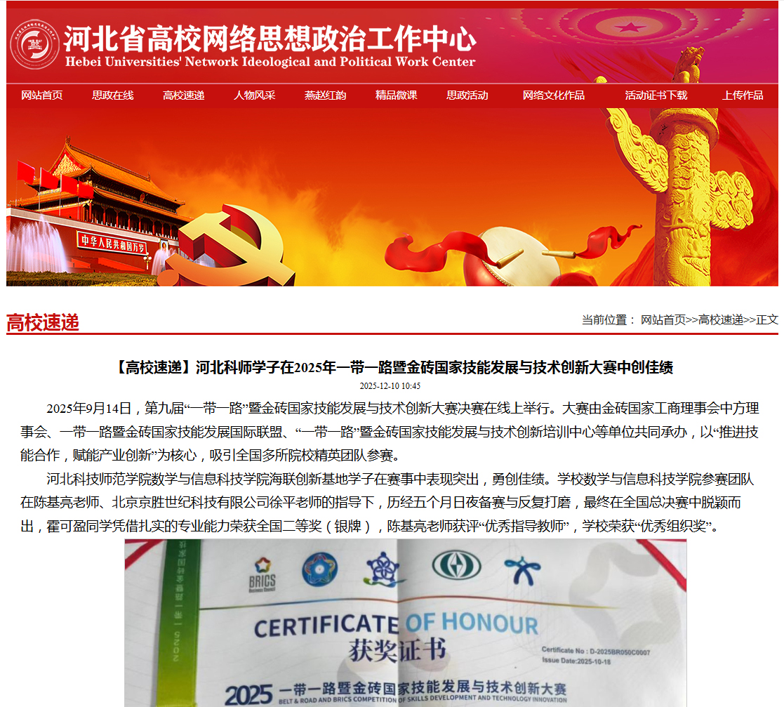 12.102025河北省网络思想政治工作中心网:河北科师学子在2025年一带一路暨金砖国家技能...