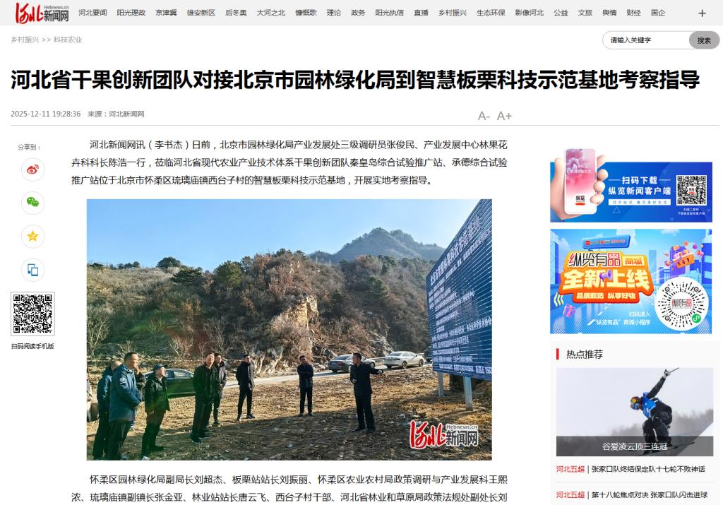 12.142025河北新闻网:河北省干果创新团队对接北京市园林绿化局到智慧板栗科技示范基地...