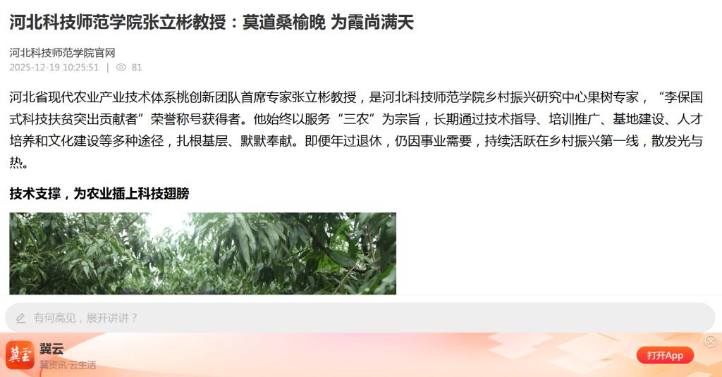 12.192025长城网:河北科技师范学院张立彬教授:莫道桑榆晚 为霞尚满天【党委宣传部】